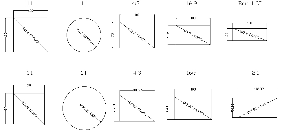 Above: when the length of each LCD is the same and 100, their diagonal dimensions vary greatly due to different widths, so the diagonal dimensions are different between 3.9 "- 5.6".